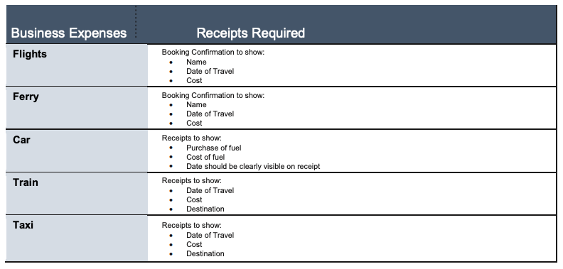 Please ensure you have valid receipts for their travel and accommodation costs.